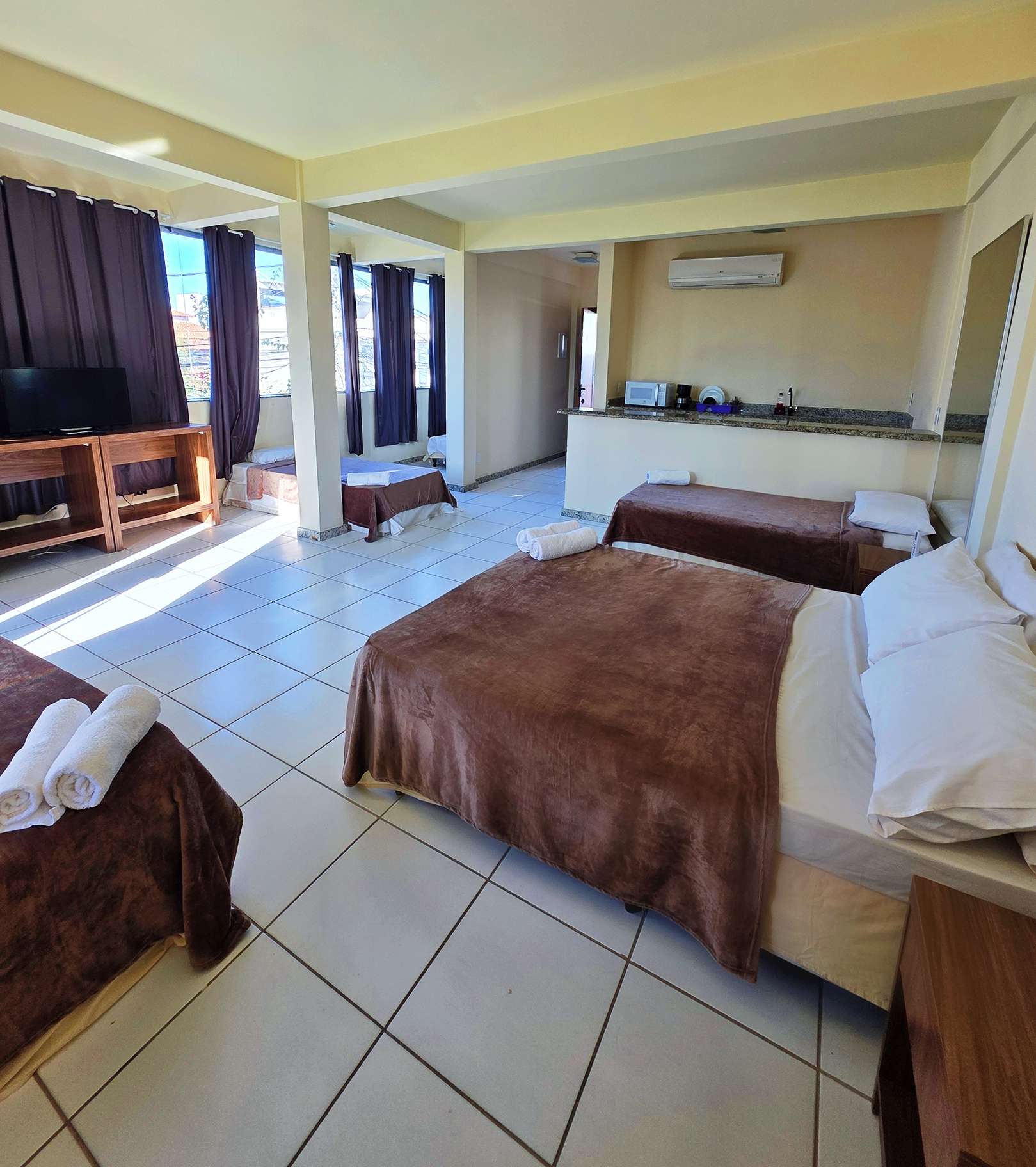 Configuração: 1 cama de casal + 2 camas de solteiro